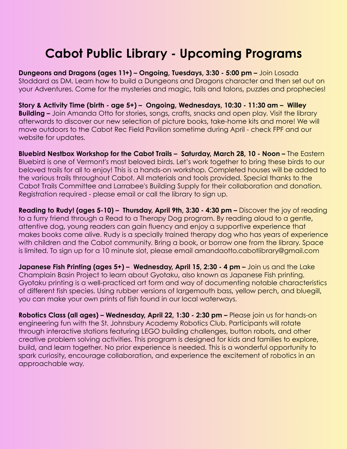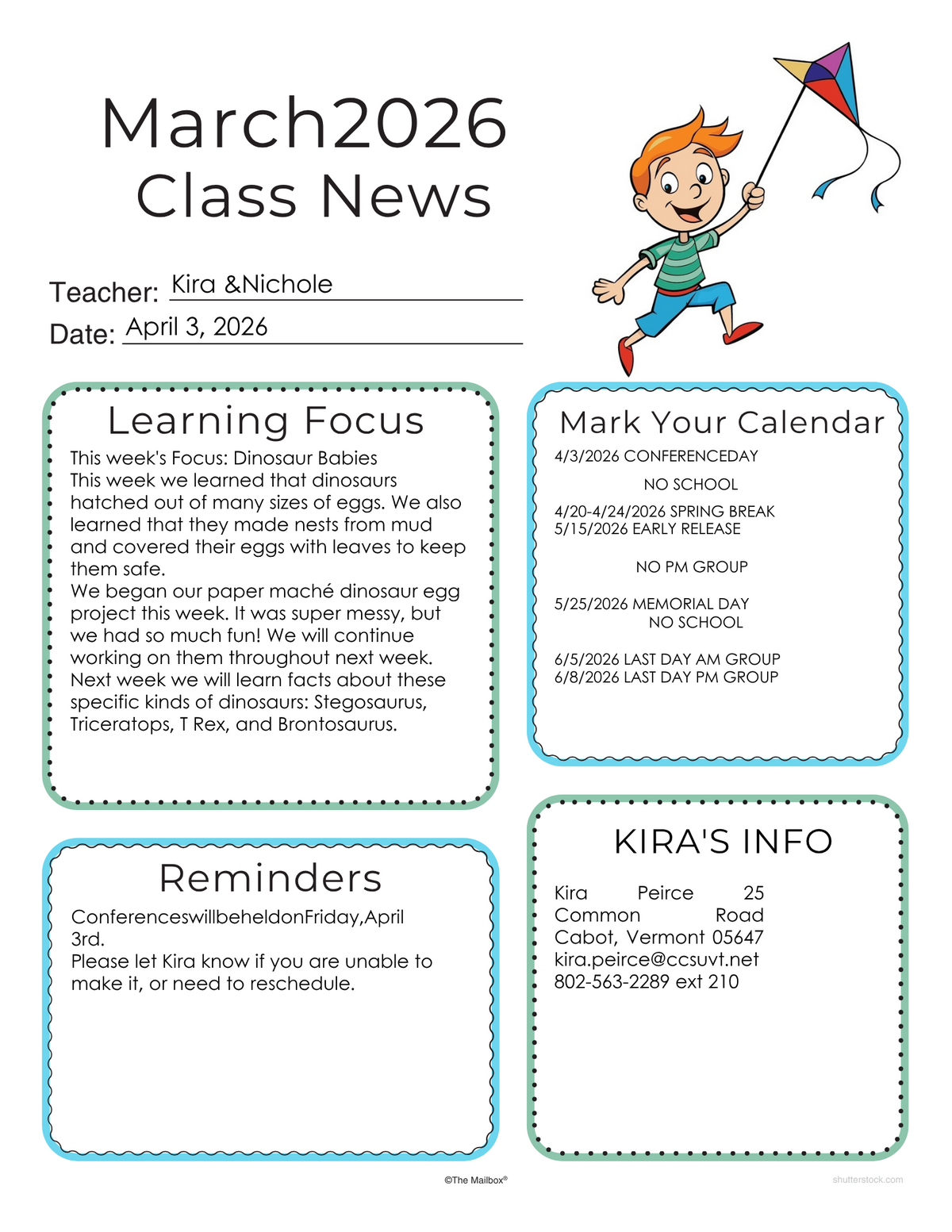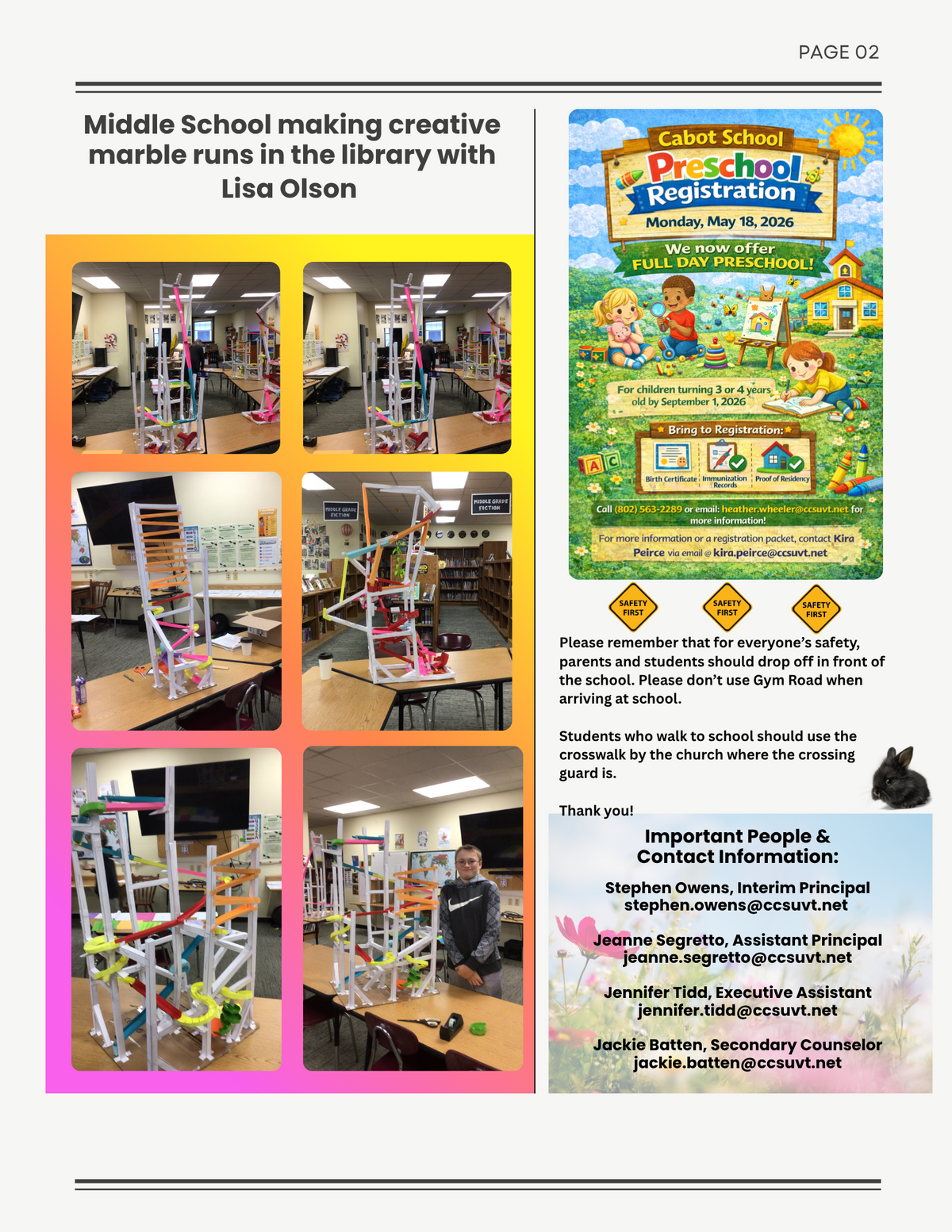Thanks to Angela for all her dedication to this newsletter! Many of you know that there is a special school board meeting tonight, Friday, April 3rd. Information about that is listed on the first page of the newsletter.